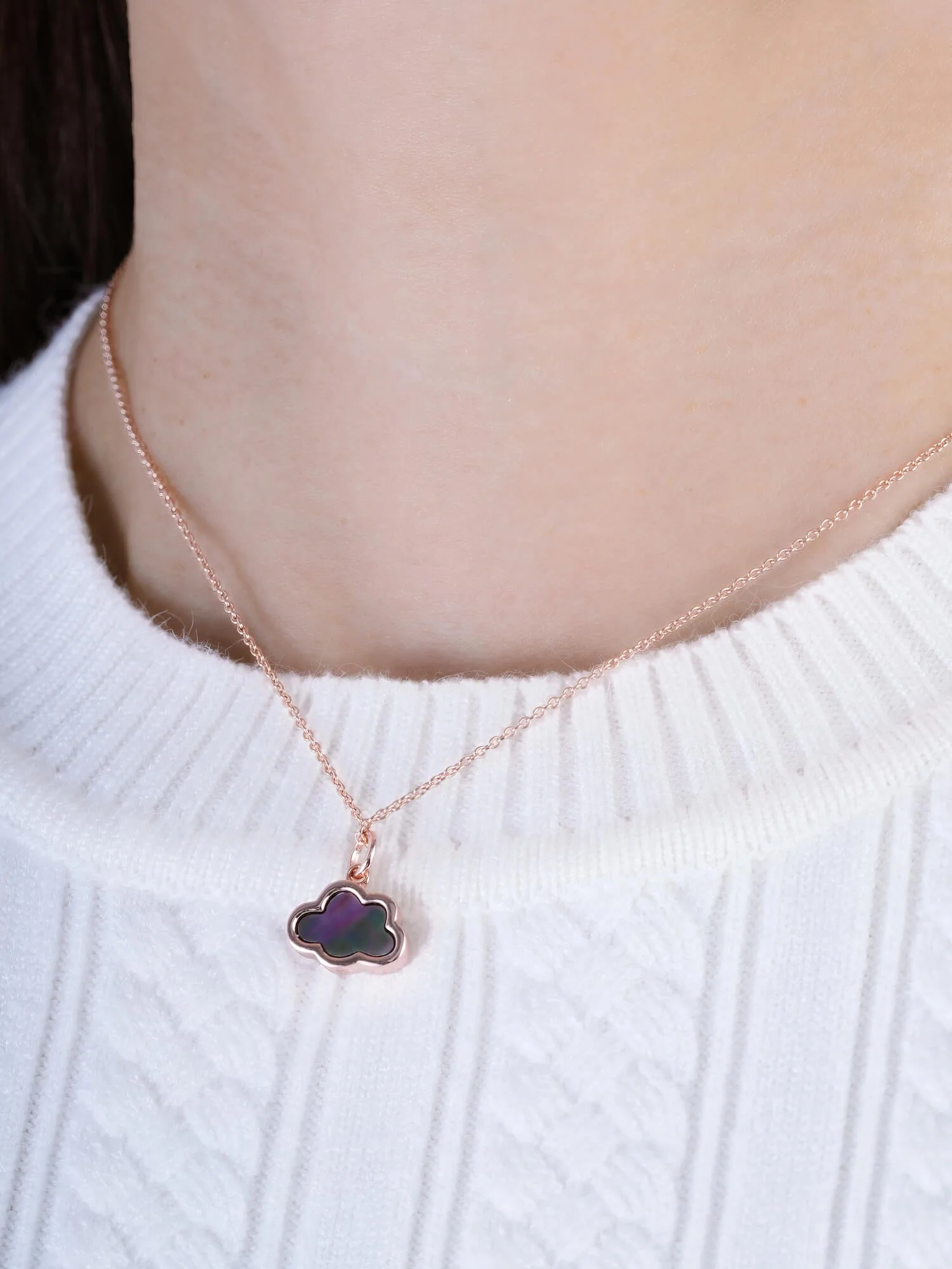 This pendant is designed in a simple cloud shape to highlight the shimmer of natural mother of pearl. Handcrafted in S925 rhodium vermeil.